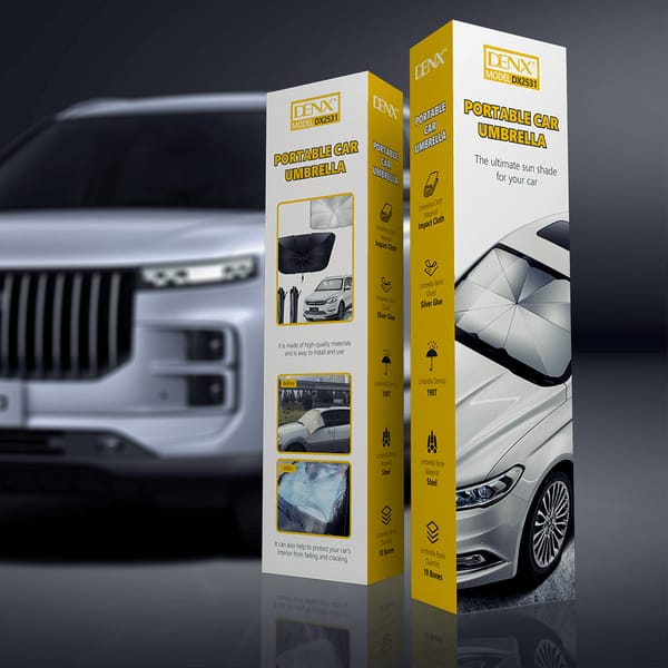 DENX Portable Car Umbrella – A multifunctional foldable windshield cover designed to protect your car interior from extreme heat and UV rays.